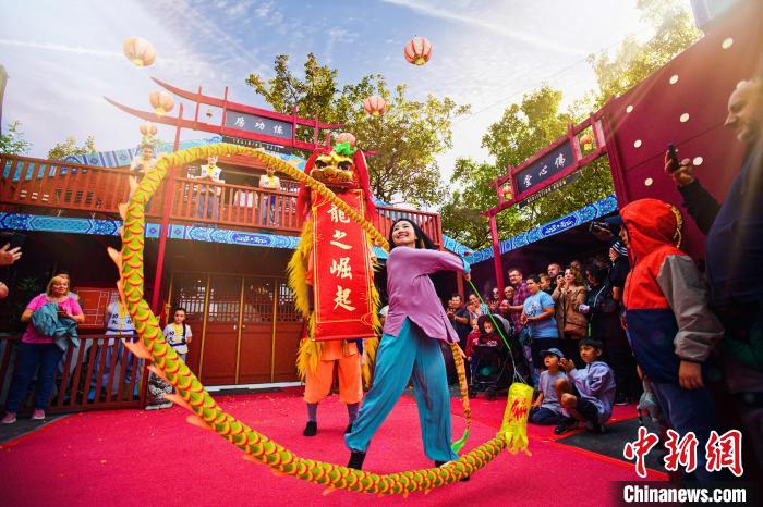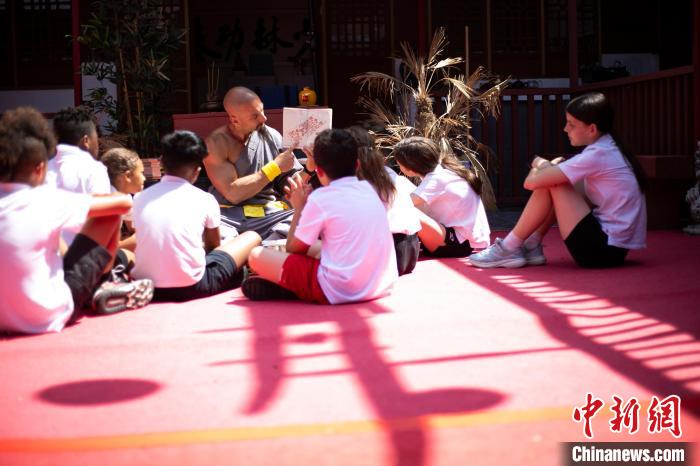 2023年7月22日,在武館舉辦的社區(qū)開(kāi)放日活動(dòng)上,白龍和常春向?qū)W生展示武術(shù)?!$娦?攝