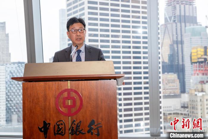 當(dāng)?shù)貢r(shí)間4月10日,以“經(jīng)濟(jì)合作與文化傳承的雅致之約”為主題的“甘肅雅集”推介活動(dòng)在美國紐約曼哈頓舉行。圖為甘肅省委常委、副省長張錦剛致辭?! ≈行律缬浾?廖攀 攝
