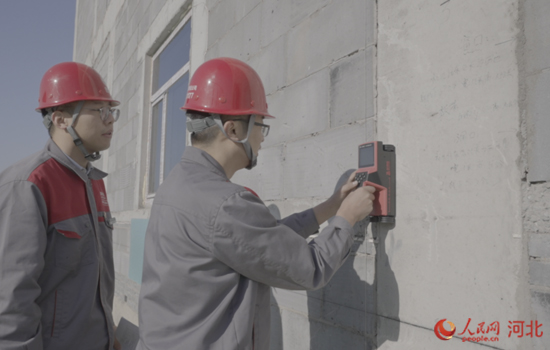 雄東項目管理部人員對500千伏配電裝置樓框架柱鋼筋保護層厚度進行專項檢測。 穆靖攝