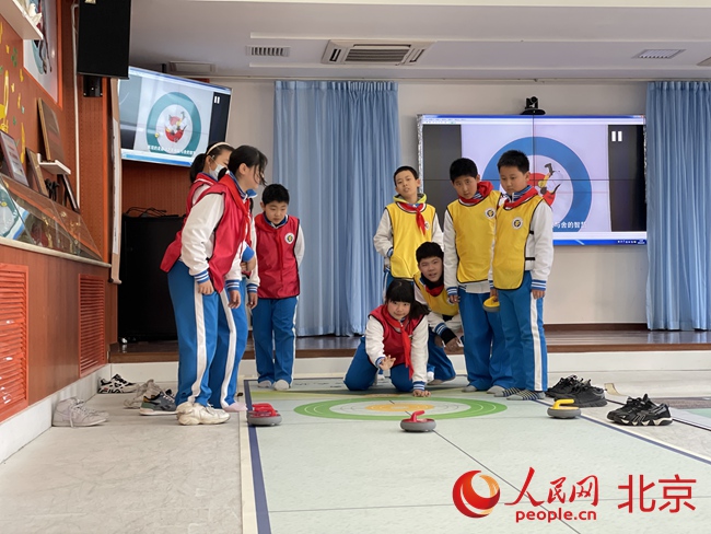 海淀首個小學“冰雪教室”亮相,可進行冰壺、短道速滑等項目。人民網(wǎng) 董兆瑞攝