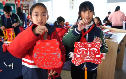 曹村鎮(zhèn)學校曼妙燈彩課程指導老師李仁秋說:“做一個虎年主題的燈彩,來迎接中國傳統(tǒng)的春節(jié),也感受下中國傳統(tǒng)的文化?!?/p>