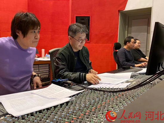 董剛(左一)在冬奧會(huì)前參與開(kāi)幕式音樂(lè)錄制。 受訪者本人供圖