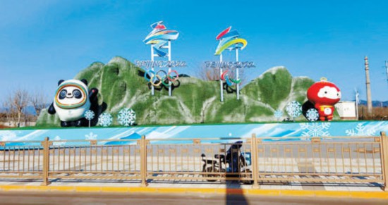 “綠色冬奧”主題花壇將運動和自然融為一體。