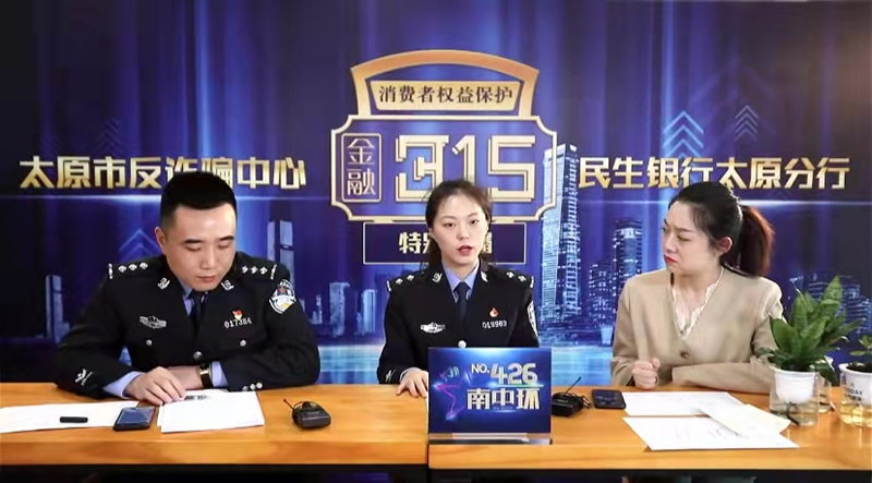 人民網(wǎng)太原3月15日電 為進(jìn)一步增強(qiáng)人民群眾防范電信網(wǎng)絡(luò)詐騙意識(shí),發(fā)揮公安機(jī)關(guān)和金融行業(yè)的宣傳合力,3月15日下午,太原市反詐騙中心與民生銀行太原分行聯(lián)合開展了“3·15”專題防范電信網(wǎng)絡(luò)詐騙直播活動(dòng),為廣大群眾帶來了滿滿的防詐騙“干貨”。