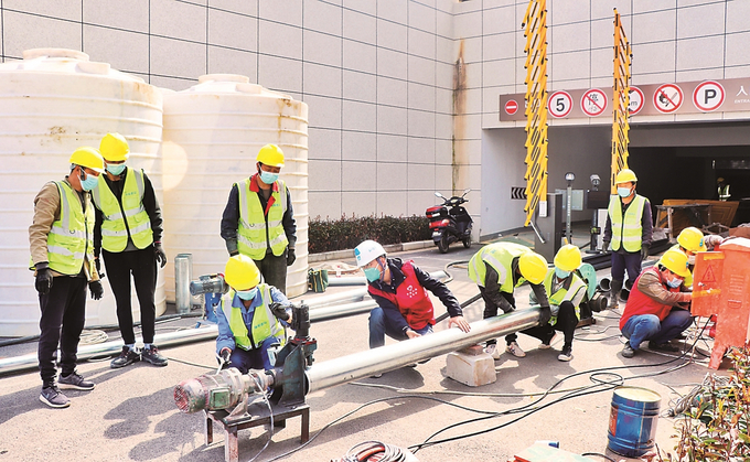 南京一疫情隔離點(diǎn)開展污水處理系統(tǒng)安裝工作。 通訊員 李天心 本報記者 范俊彥 攝
