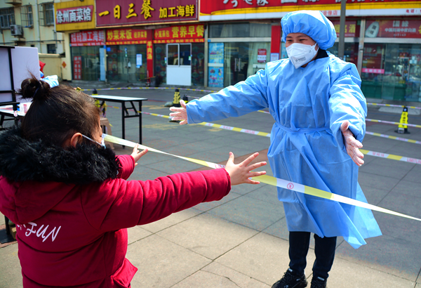 “我要媽媽......”3月16日上午11點(diǎn),在江蘇連云港市連云區(qū)墟溝街道東園社區(qū)步行街核酸檢測(cè)點(diǎn),一個(gè)8歲的小女孩張開(kāi)雙手,哭喊著要媽媽。一旁身著防護(hù)服的母親卻連連后退,背過(guò)身悄悄擦去淚水。視頻中的這位母親,是墟溝街道民政辦辦事員孫麗群。