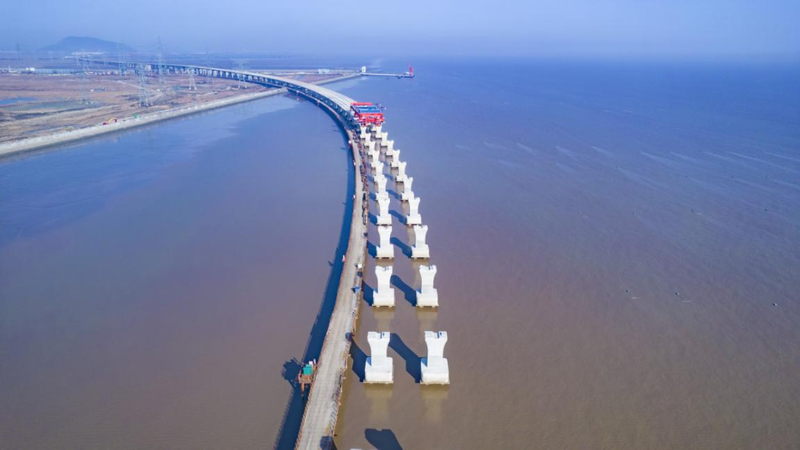杭甬復(fù)線寧波一期項(xiàng)目濱海高架特大橋施工現(xiàn)場(chǎng)。浙交建設(shè)公司供圖