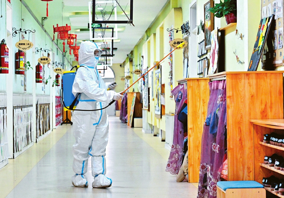 4月1日一早,呂梁市離石區(qū)實(shí)驗(yàn)幼兒園工作人員正在對園區(qū)進(jìn)行消殺。離石區(qū)教科局嚴(yán)把防疫責(zé)任關(guān)、技術(shù)關(guān)、排查關(guān)、消毒關(guān)、落實(shí)關(guān),快部署快落實(shí)疫情防控各項(xiàng)措施,織牢疫情防控網(wǎng),為孩子們創(chuàng)造一個(gè)安全、舒適、健康的學(xué)習(xí)生活環(huán)境。(記者劉通攝)