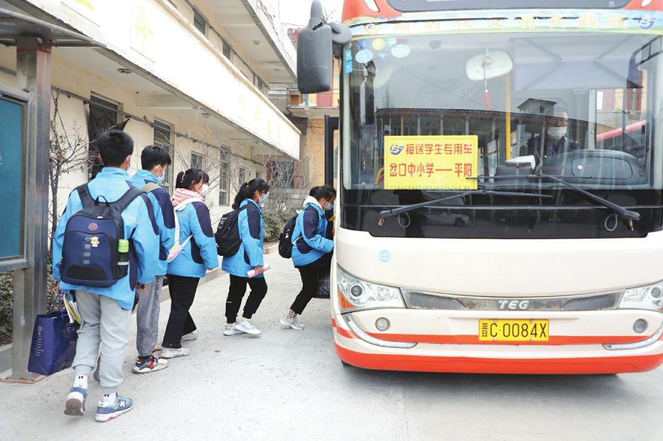 2013年,陽(yáng)泉市平定縣實(shí)行交通惠民“暖心工程”,開(kāi)通了免費(fèi)接送寄宿制學(xué)生專(zhuān)用車(chē),每周五下午到校接送學(xué)生回家,周一早晨再接送他們安全返校。截至目前,平定公交公司共開(kāi)通接送寄宿生專(zhuān)線72條,投入運(yùn)營(yíng)車(chē)輛95臺(tái),覆蓋全縣10個(gè)鄉(xiāng)(鎮(zhèn))的202個(gè)村莊、31所學(xué)校、2600余名寄宿制學(xué)生。圖為近日,該縣岔口中學(xué)操場(chǎng)上,分散居住在十里八鄉(xiāng)的寄宿制學(xué)生正準(zhǔn)備乘車(chē)回家。(張春林?jǐn)z)