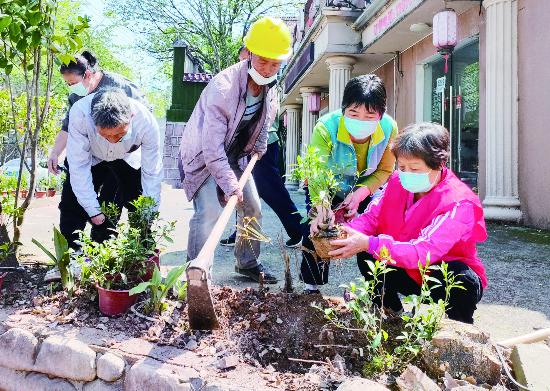 近日,金華市區(qū)城中街道楊思嶺社區(qū)企退人員、黨員志愿者開展“愛心植樹、綠色環(huán)保”實(shí)踐活動,在公共花壇泥土裸露的地方,補(bǔ)栽梔子花、風(fēng)尾花等花卉,美化社區(qū)環(huán)境。(時寬兵)