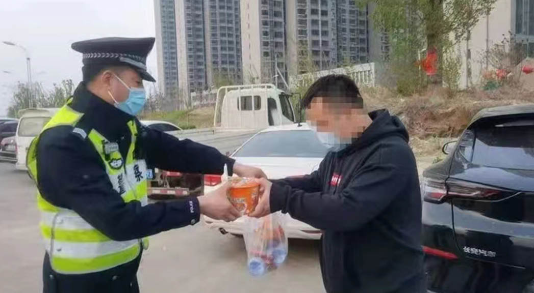 執(zhí)勤民警為滯留人員送來熱乎乎的飯菜。 邯鄲市公安局供圖