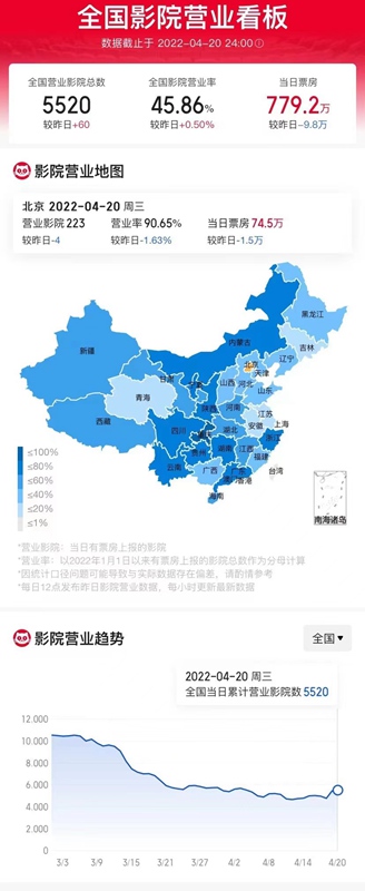4月20日全國影院營業(yè)數(shù)據(jù)。網(wǎng)絡截圖