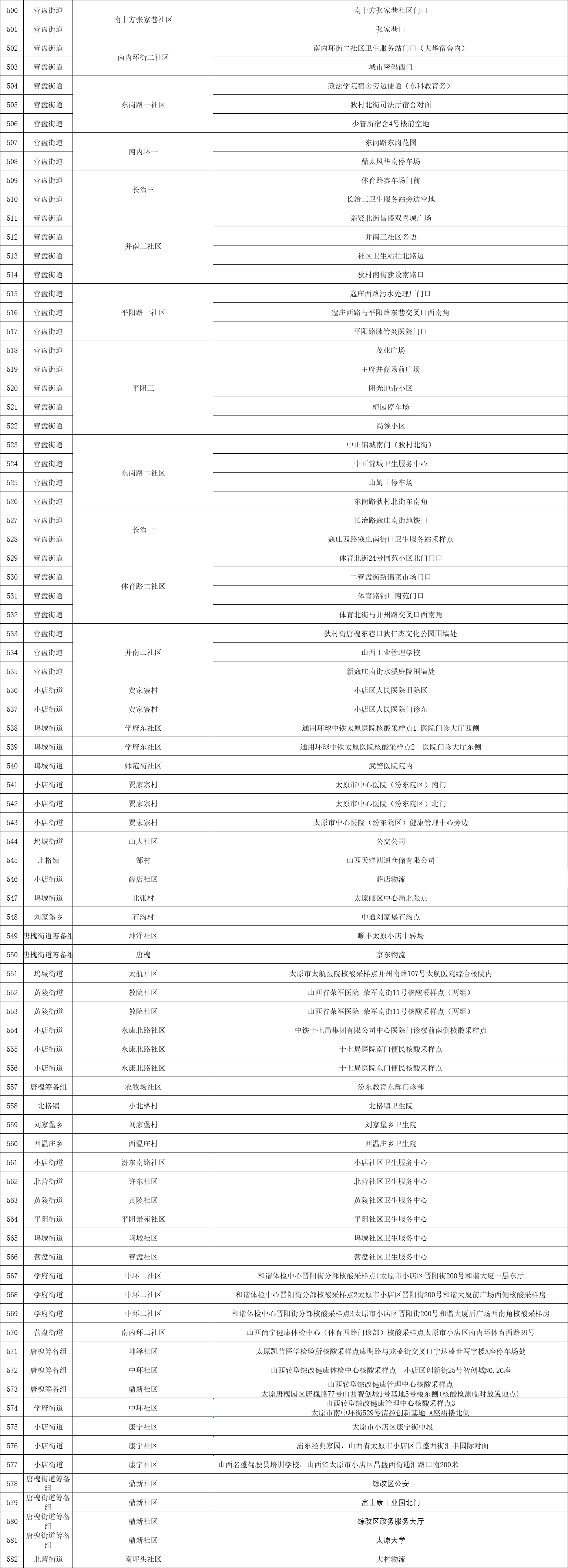 附:太原六城區(qū)便民核酸采樣點(diǎn)位