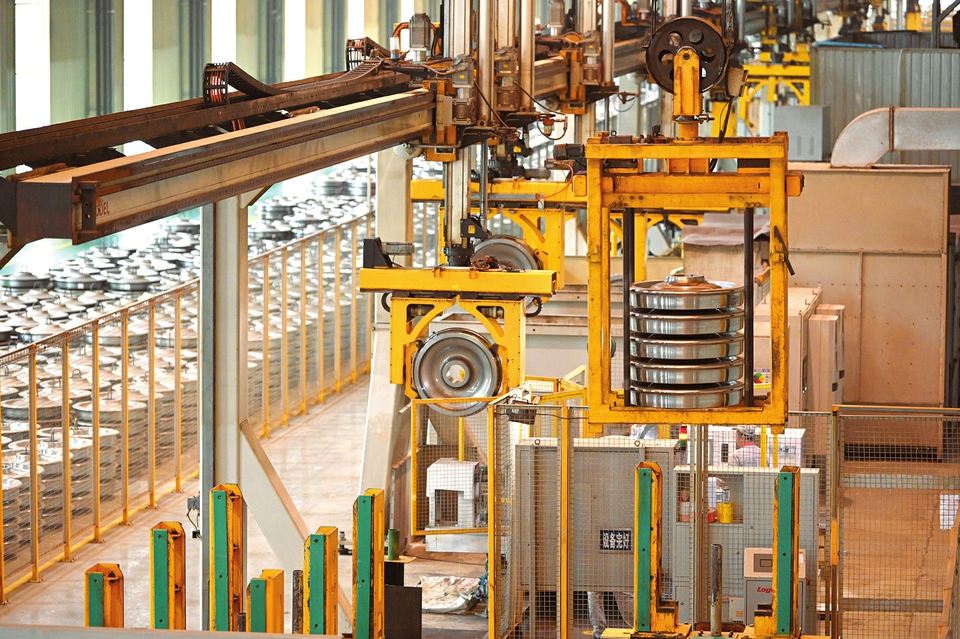 5月10日,太重軌道公司輪對(duì)生產(chǎn)車間檢測(cè)線上,工作人員正在對(duì)即將出廠的高鐵鋼輪進(jìn)行檢驗(yàn)。該公司將精益管理和改革創(chuàng)新當(dāng)做抓好各項(xiàng)工作任務(wù)的關(guān)鍵,深耕國(guó)際國(guó)內(nèi)市場(chǎng),積極推進(jìn)海外項(xiàng)目合作,穩(wěn)固國(guó)內(nèi)傳統(tǒng)市場(chǎng)行業(yè),打破傳統(tǒng)營(yíng)銷方式,積極培育新模式、新業(yè)態(tài),不斷加強(qiáng)核心技術(shù)攻關(guān),拓展新的產(chǎn)品市場(chǎng)。(記者李兆民攝)