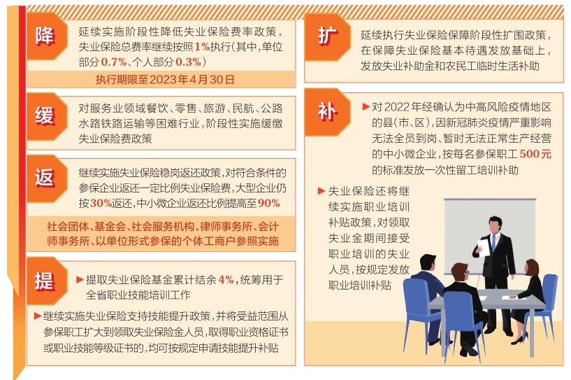 這次失業(yè)保險新政重點圍繞“降、緩、返、提、擴、補”等方面(詳細內容見下圖)推出穩(wěn)崗位提技能防失業(yè)舉措。(記者高建華)