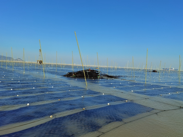“海上田園”試行紫菜、牡蠣間養(yǎng)模式,實現(xiàn)經(jīng)濟(jì)效益和生態(tài)效益雙提升。連云區(qū)委宣傳部供圖