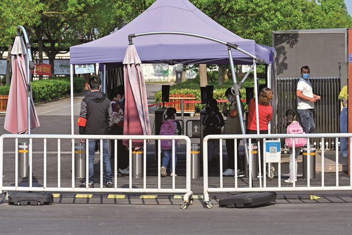 5月16日上午,在嘉興嘉善縣一小學(xué)門(mén)口,同學(xué)們佩戴口罩通過(guò)測(cè)溫設(shè)備有序進(jìn)入校園,開(kāi)啟課堂學(xué)習(xí)。據(jù)了解,除“三區(qū)”外,嘉善縣中小學(xué)、幼兒園均已有序復(fù)學(xué)復(fù)課。(張啟帆)