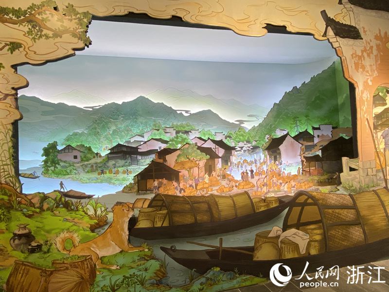 “茶之道”展廳生動還原了古代松陽縣集市交易的繁榮盛況。人民網(wǎng) 方彭依夢攝