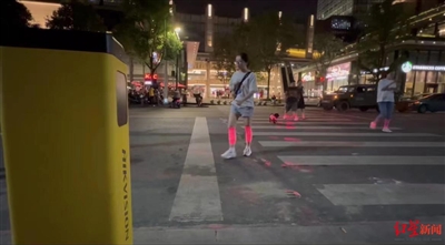 近日,在成都市溫江區(qū)人和東街散步的小蔡剛走上斑馬線,突然發(fā)現小腿上全是紅色光線,斑馬線四周也瞬間亮了許多,遠處駛來的小轎車發(fā)現“自帶光環(huán)”的小蔡也早早放慢了車速。