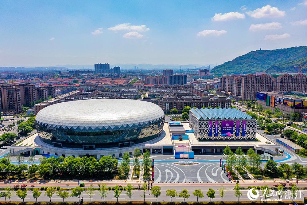 航拍蕭山區(qū)瓜瀝文體中心。人民網(wǎng) 章勇濤攝