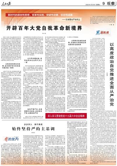 全面從嚴治黨是黨永葆生機活力、走好新的趕考之路的必由之路。黨的十九屆六中全會通過的《中共中央關于黨的百年奮斗重大成就和歷史經(jīng)驗的決議》,深刻總結了新時代在全面從嚴治黨上取得的原創(chuàng)性思想、變革性實踐、突破性進展、標志性成果。今天刊發(fā)的3篇文章,圍繞這一主題進行闡述。