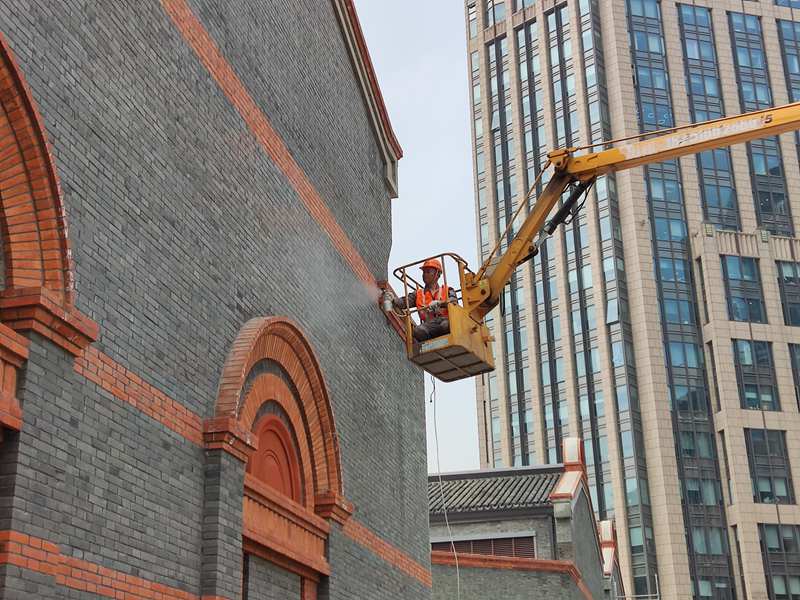 來到工程現(xiàn)場時,該公司的技術(shù)團隊正在對杭州奧體中心體育場館的外立面進行清洗,祛除表面油漬和污垢,再噴涂企業(yè)自主研發(fā)的一種二氧化鈦水溶性溶膠涂料——HPC光催化自潔涂膜?!肮饩€射入時,涂膜內(nèi)部會形成光柱,光催化材料會被激活,持續(xù)光催化反應(yīng)。”鄭凱介紹,HPC光催化自潔涂膜的二氧化鈦納米粒子粒徑保持在5至30納米級,整個性狀非常穩(wěn)定,從而保證了涂膜在噴涂墻上后長時間保持良好的光催化反應(yīng)效果長效性和高活性。