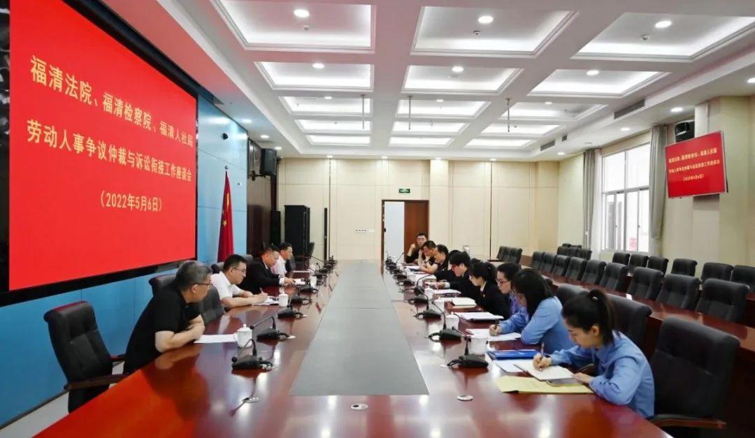 為更好推進(jìn)裁審銜接,經(jīng)溝通,2022年5月6日,福清市法院、福清市檢察院、福清市人社局共同召開勞動人事爭議仲裁與訴訟銜接工作座談會。