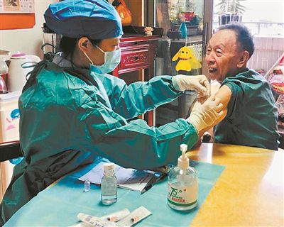 當天上午,86歲高齡的黃俊英精神矍鑠,圍繞著粵語相聲聊得起勁。一旁的醫(yī)護人員嚴格按照接種流程,對他的身體健康狀況進行綜合檢查和認真評估,確認其健康狀況穩(wěn)定、無相關(guān)禁忌癥,并征得其同意后,為其接種疫苗。