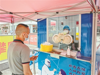 “不用擔(dān)心日曬雨淋、不用穿‘大白’、不用戴N95口罩、不用擔(dān)心被感染、不用連續(xù)工作六個(gè)小時(shí)……這樣的核酸采樣環(huán)境讓醫(yī)護(hù)人員心里暖暖的。”從早上9點(diǎn)到中午12點(diǎn)連續(xù)采樣三個(gè)小時(shí),正在進(jìn)行交接工作的葉醫(yī)生告訴記者。