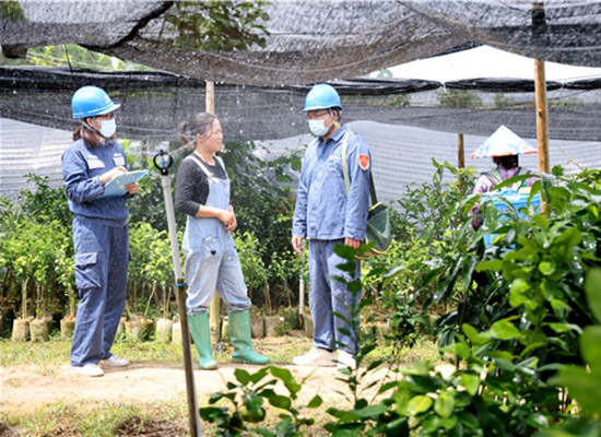 黨員服務(wù)隊了解基地果苗生產(chǎn)用電需求。陳心誠攝