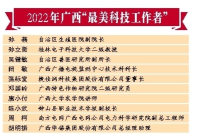 2022年廣西“最美科技工作者”獲表彰