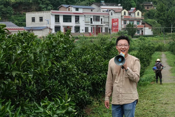 劉峰鉆拍攝視頻推銷果園柑橘。受訪者供圖