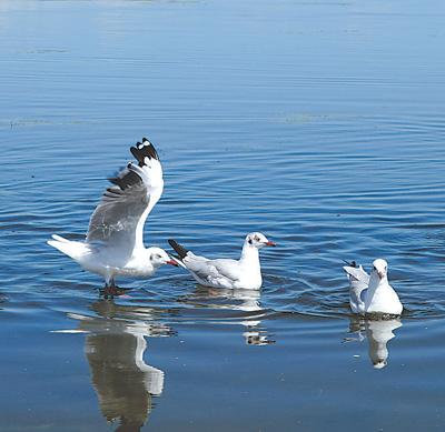 水鳥在青海湖棲息覓食。