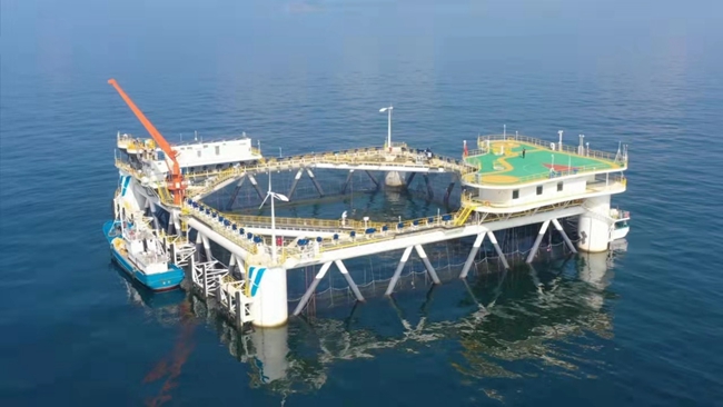 亞洲最大的深海智能網(wǎng)箱“經(jīng)海001號(hào)”。 中集來(lái)福士供圖