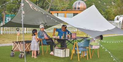 “三五好友結(jié)伴而行,喝茶賞景,好不愜意。”程曉說,“現(xiàn)在市場上有很多比較成熟的露營產(chǎn)品可選擇,有的只提供帳篷等設(shè)備,需要自備餐食,有的是全包,吃住游所需都準(zhǔn)備好了,還有些個(gè)性化的產(chǎn)品會(huì)提供桌游、羽毛球等休閑項(xiàng)目?!痹隗w驗(yàn)過幾次露營后,程曉正打算帶上父母一起戶外郊游。