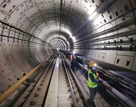 工人進行線路區(qū)間光纜敷設(shè)。中鐵電氣化局城鐵公司供圖