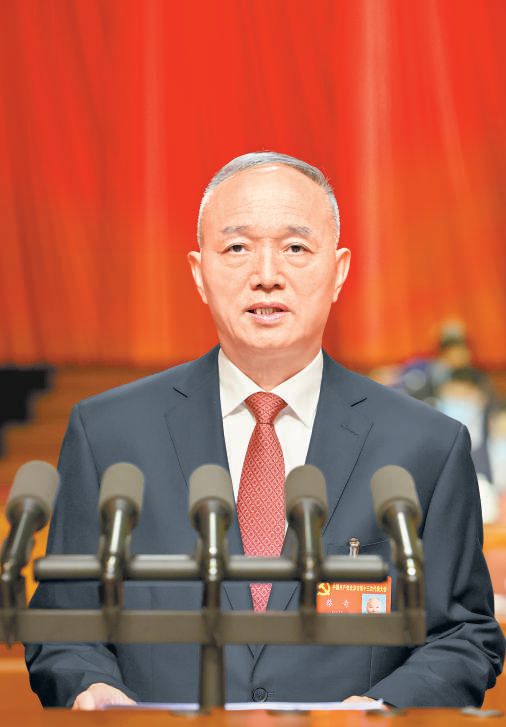 蔡奇同志代表十二屆市委作工作報告。本報記者 戴冰攝