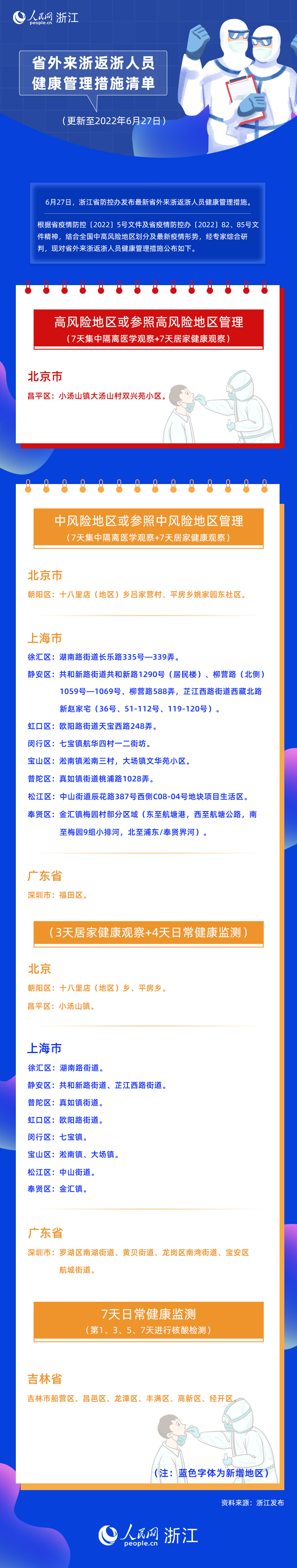 省外來浙返浙人員健康管理措施(6月27日更新)