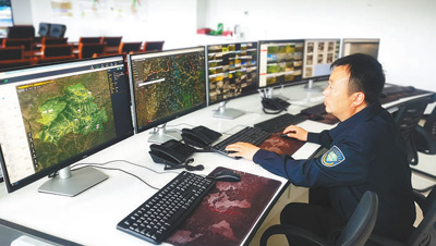 地面,坐在電腦屏幕前,可將浩瀚森林和廣袤草原盡收眼底,通過視頻監(jiān)控系統(tǒng)實時監(jiān)控林場花草樹木的安全;