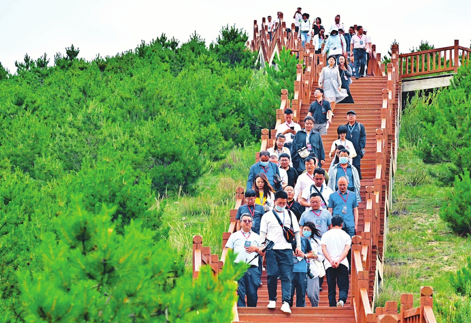 7月17日,來自全國各地的游客在大同市云州區(qū)火山群國家地質(zhì)公園狼窩山景區(qū)暢游。近年來,云州區(qū)完成火山群綠化30萬畝,建設(shè)火山旅游路50多公里,配套建設(shè)了火山地質(zhì)廣場、火山觀景臺、火山地質(zhì)公園博物館等,深受游客青睞。(劉通 王中勛攝)