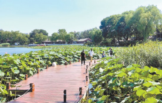 近幾年來,什剎海西海通過拆除違建、疏通堵點亮出岸線,還湖于民,讓西?!办o”下來。西海濕地全線共新建7處總計1000平方米的環(huán)湖觀景棧道,成為市民休憩觀景的親水之地。