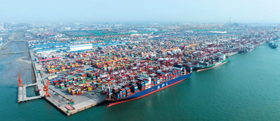 圖為山東港口青島港前灣集裝箱碼頭。