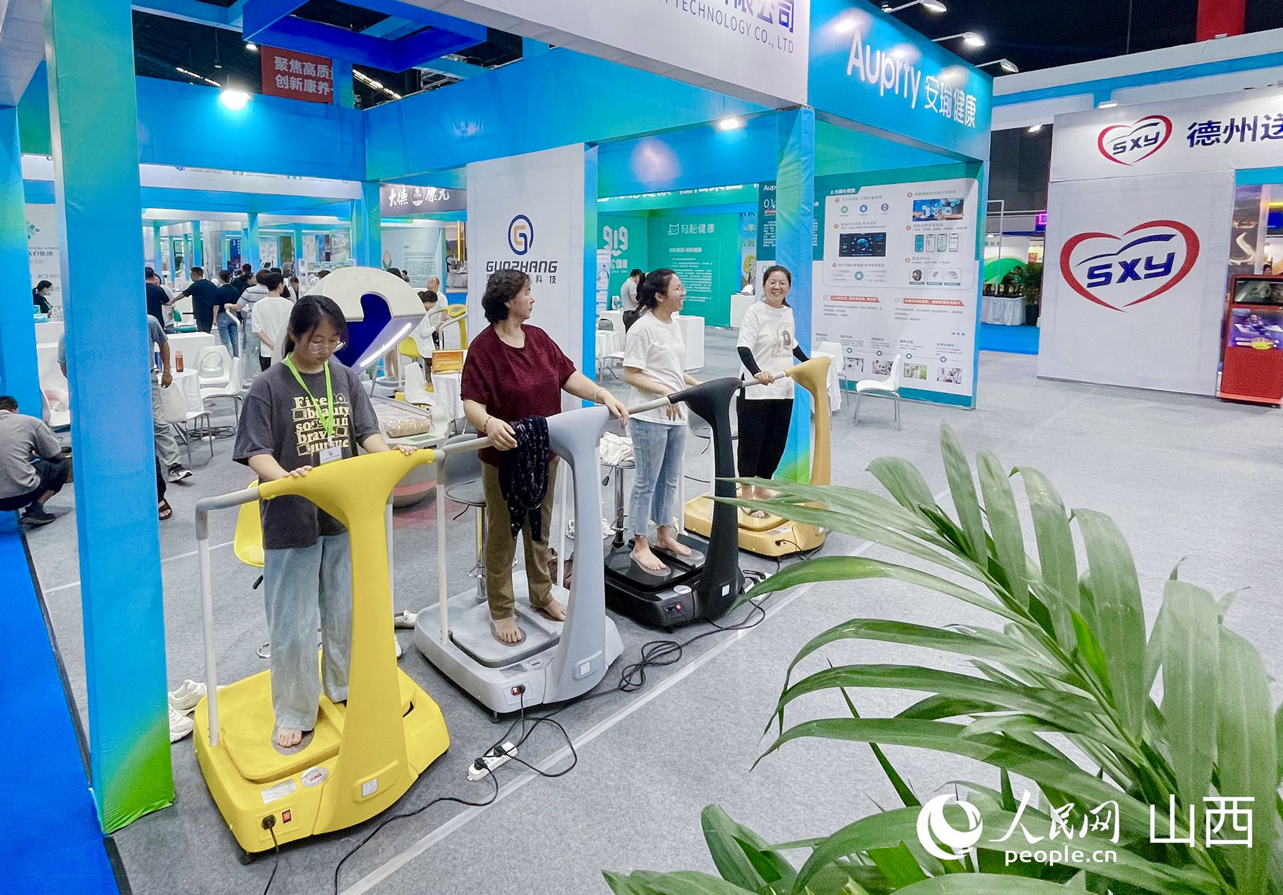 游客體驗(yàn)康養(yǎng)科技儀器。人民網(wǎng)記者 王帆攝