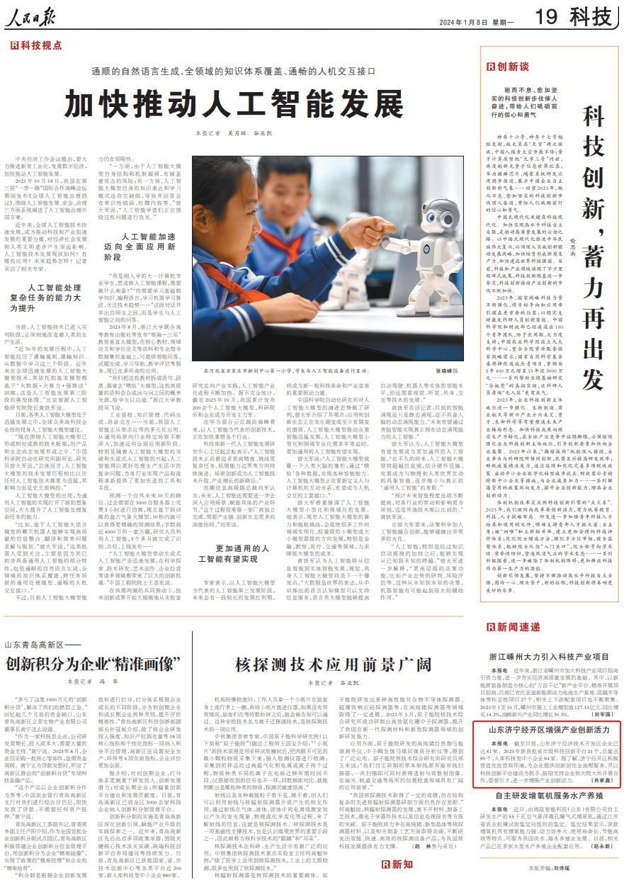 人民日報(bào) | 山東濟(jì)寧經(jīng)開區(qū)增強(qiáng)產(chǎn)業(yè)創(chuàng)新活力