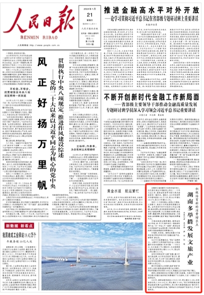 人民日報頭版關(guān)注:湖南多舉措發(fā)展文旅產(chǎn)業(yè)