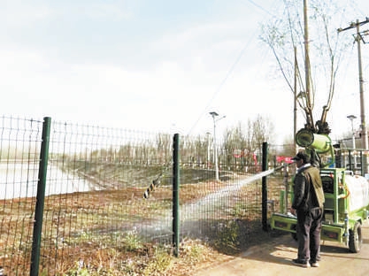為免施工揚(yáng)塵,灑水車隨時(shí)跟進(jìn)灑水。