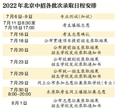 北京中招錄取7月17日啟動(dòng)7月11日至15日填報(bào)志愿