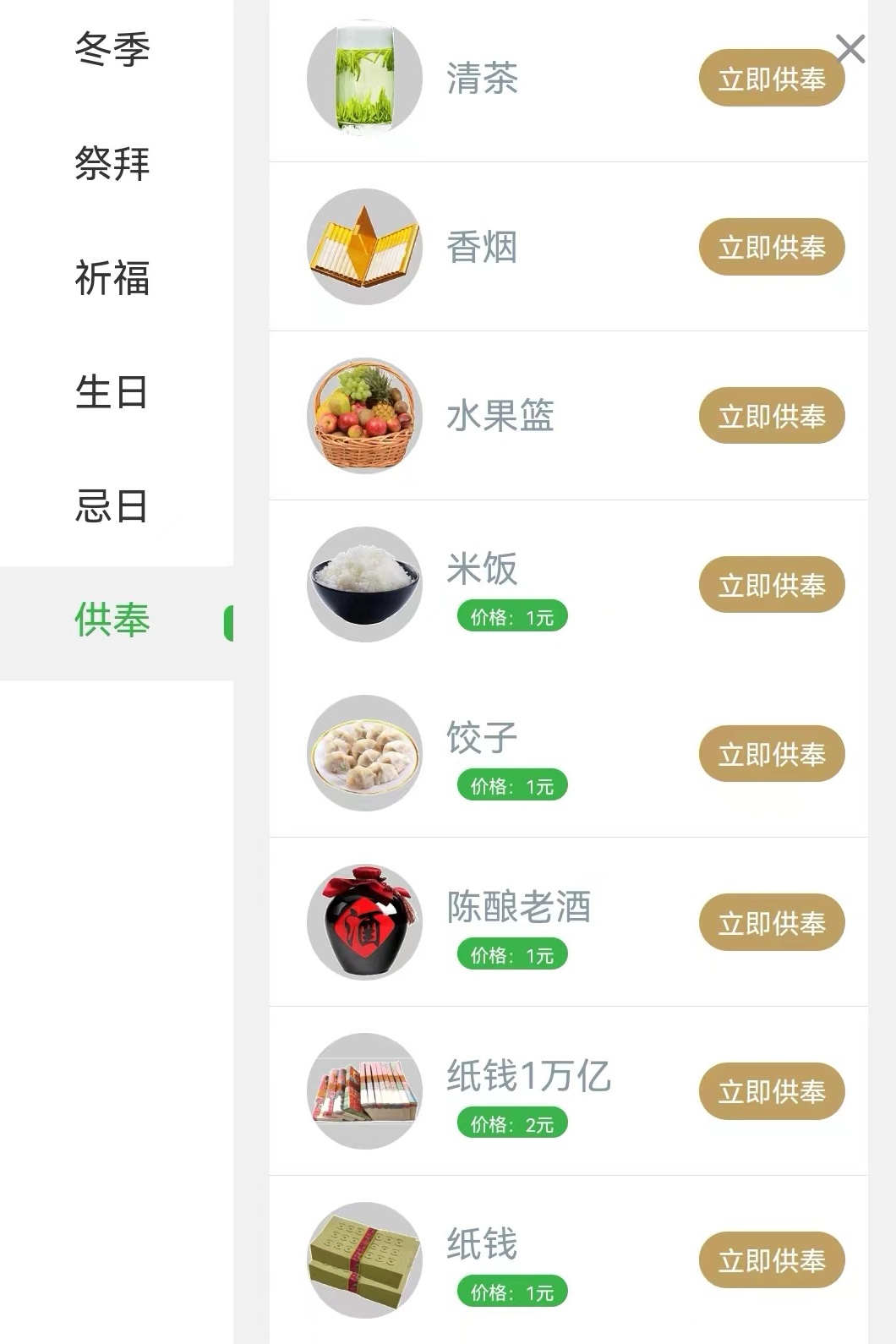 記者發(fā)現(xiàn),用戶免費創(chuàng)建“網(wǎng)上紀念館”后,可以在紀念館進行“祭拜、祈福、獻花、供奉”等虛擬活動。而在推出的這些虛擬服務中,有些是免費的,有些則要收取費用。比如,在某平臺送出一個“生日快樂”蛋糕,需要微信支付2元,送一疊“忌日紙錢”需要支付1元,一份“米飯”1元。