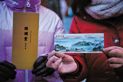 工作人員展示漪瀾堂等瓊島古建聯(lián)票。