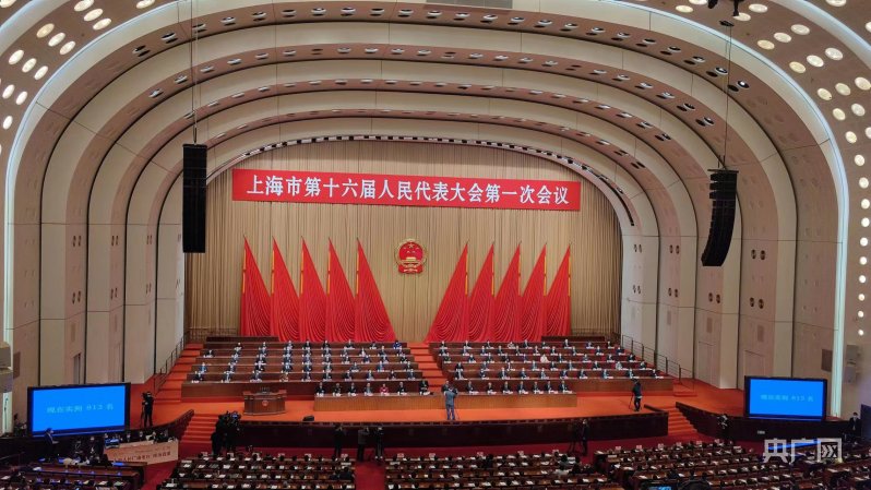 上海市第十六屆人大一次會議1月11日上午在世博中心開幕(央廣網(wǎng)記者 林馥榆 攝)